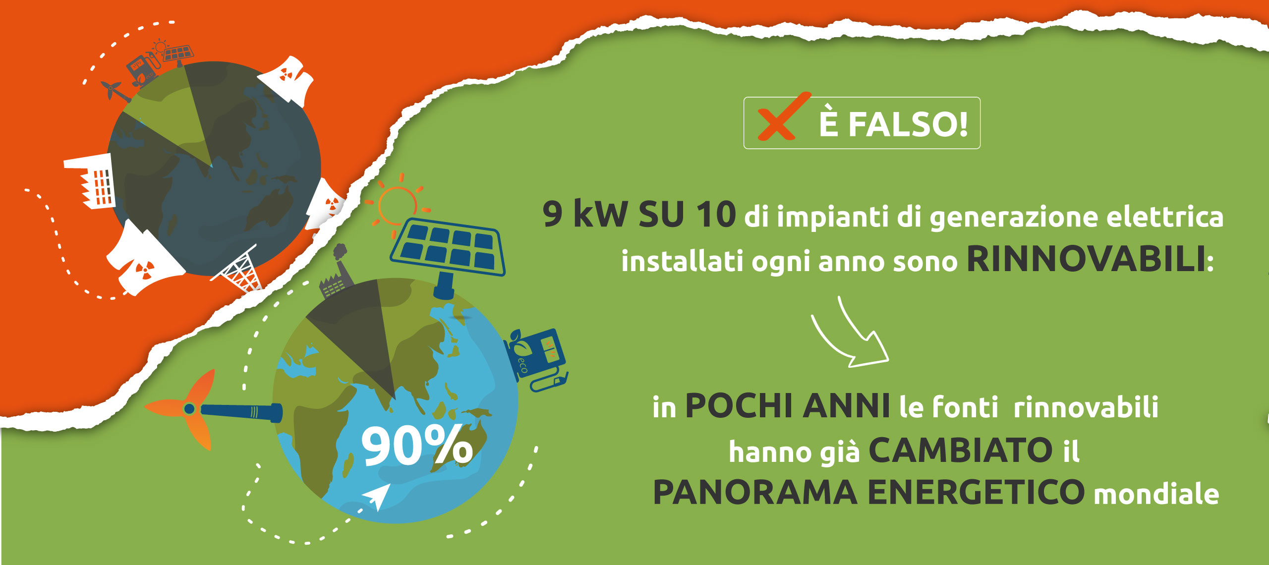 Secondo questo mito, le fonti rinnovabili sarebbero una tecnologia di nicchia, destinata a rimanere marginale nel mondo della generazione elettrica, in cui invece i grandi numeri li fanno e continueranno a farli carbone e gas e, forse, un domani il nucleare. Con le rinnovabili si produce ancora oggi meno del 30% dell’energia elettrica mondiale, mentre la parte rimanente è tutta prodotta da carbone, gas, petrolio e nucleare. Inoltre, secondo questa credenza, la crescita delle rinnovabili sarebbe ancora molto stentata e incapace di cambiare radicalmente la situazione.